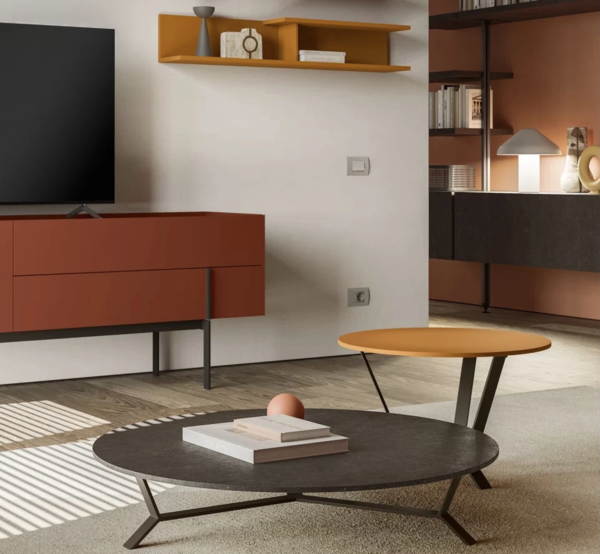 Complementi e tavolini personalizzano l'arredo di casa, occupando lo spazio in maniera utile e rendendolo accogliente e bello da vedere. Molto versatili e plurifunzionali, i Complementi moderni in melaminico assolvono a funzioni disparate: ultimano le doti di praticità e il valore estetico del locale. Tavolino Triade di SantaLucia in melaminico: conferirà personalità e charme a un locale ammobiliato con mobili e complementi dai richiami moderni. In negozio potrai vedere dal vivo l'eccellenza dei modelli di tavolini moderni in melaminico del marchio, proprio come questa soluzione in foto.