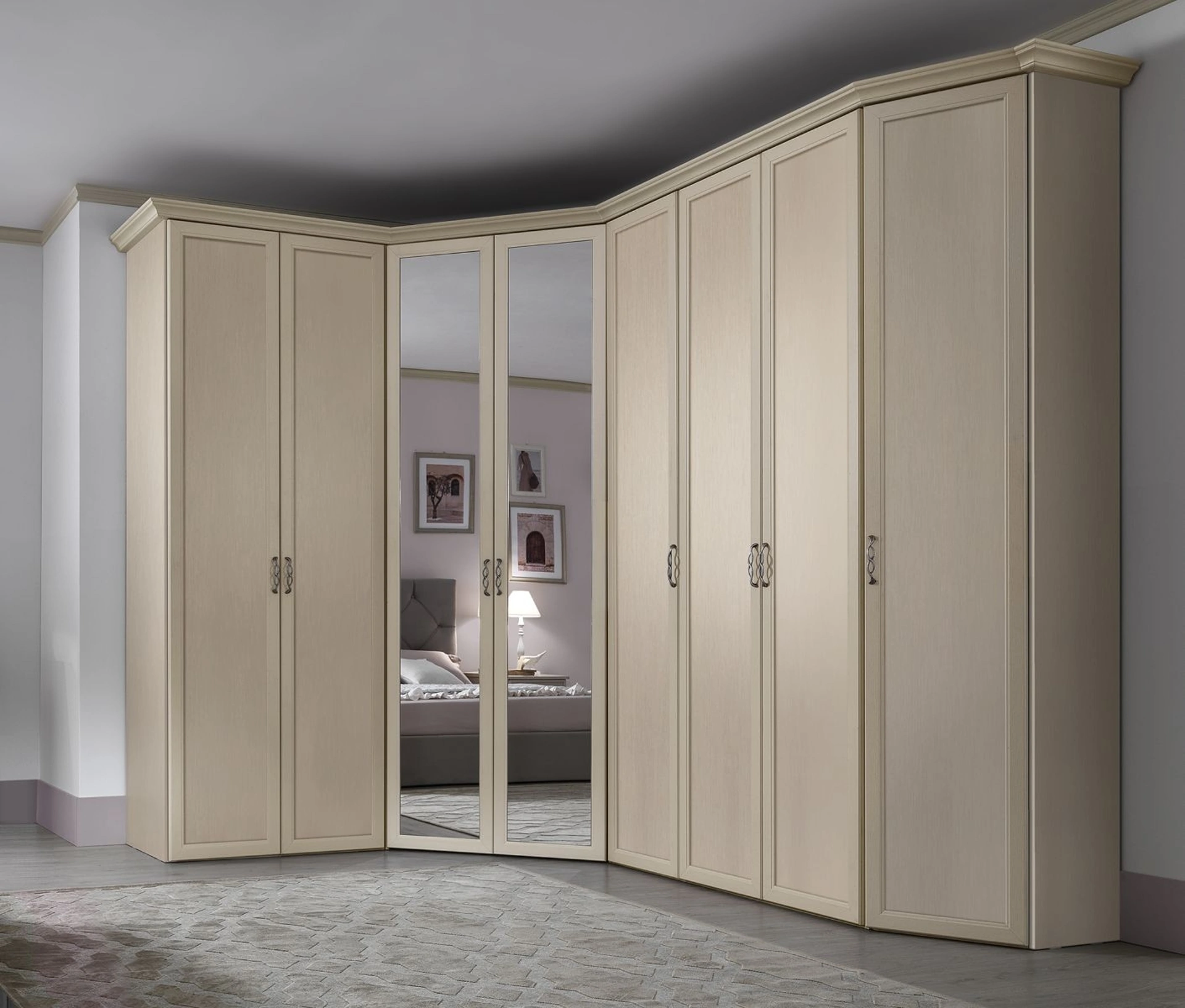 Questa soluzione, tra i diversi modelli ad angolo con ante battenti di MCSMobili, è garanzia di solidità, stile e raffinatezza duraturi negli anni. Nella nostra linea di Armadi ad angolo classici con ante battenti troverai anche il modello mostrato in foto, perfetto per chi cerca praticità e design. Per ultimare il progetto d'arredo in una camera da letto pratica e sofisticata, abbiamo scelto per te le più belle e attuali soluzioni MCSMobili, diverse per classe, grandezza, finitura e elementi accessori. Armadio Demetra DE16 di MCSMobili: compila il form per informazioni e preventivi e progetta la tua casa come l'hai sempre immaginata.