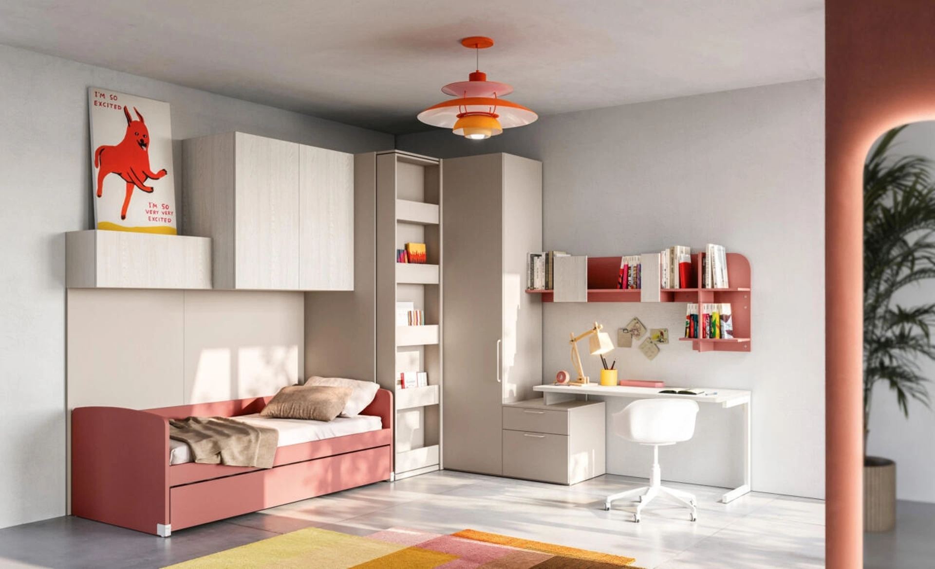Mistral dispone di un ricco catalogo di accessori da comporre su misura: troverai letto, armadio, tavolo da lavoro, sedie e librerie. Porta design e colori vivaci nella stanza dedicata ai bambini con questa soluzione, una delle Camerette componibili per ragazzi di Mistral. Nell'arredamento della stanza dei piccoli affidati a noi: in negozio proponiamo tutte le più originali composizioni moderne per la loro camera. Se cerchi spunti progettuali per decorare al meglio la stanza dei tuoi figli, ti proponiamo la Cameretta Letto a Terra 11 di Mistral con finitura in melaminico.