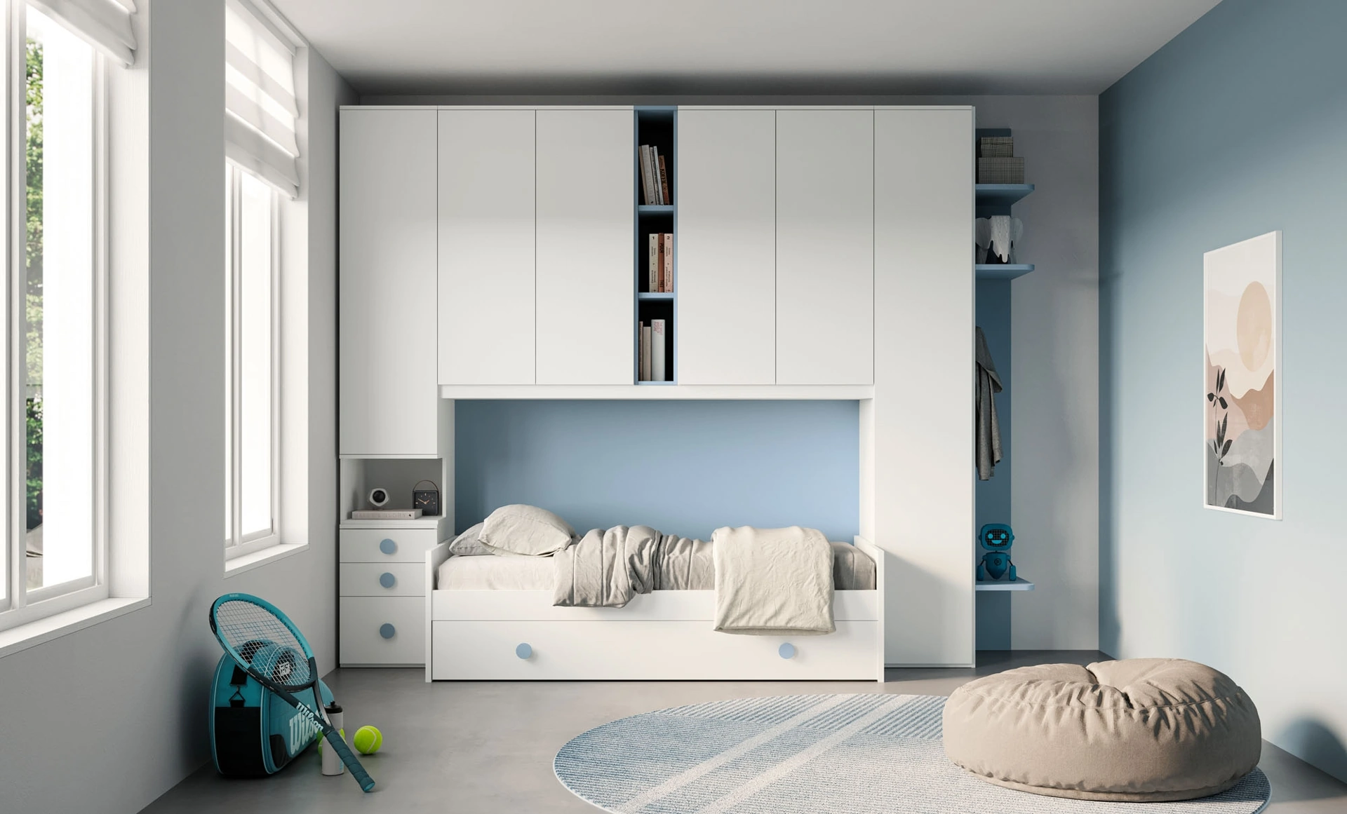 I nostri bambini passano gran parte delle loro giornate nelle loro camere da letto: rendile adatte per fare i compiti, giocare e dormire tutti i giorni. Le Camerette dei nostri figli sono lo spazio dove passeranno i loro primi anni divertendosi e sognando, dunque è imprescindibile che lo spazio sia funzionale. Con la Cameretta SMART Junior 13 di San Martino Mobili in melaminico ti garantirai un perfetto accordo di ergonomia e sicurezza, ideale per la stanza dei tuoi figli. Nel nostro showroom ti guidiamo dalla scelta dell'arredamento per la camera alla progettazione del luogo nel quale i tuoi bimbi cresceranno, divertendosi e sognando.
