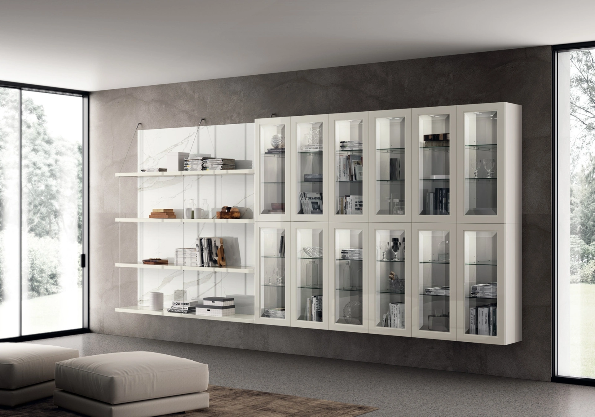 Libreria Living Exclusiva in laccato lucido Bianco Prestige di Scavolini
