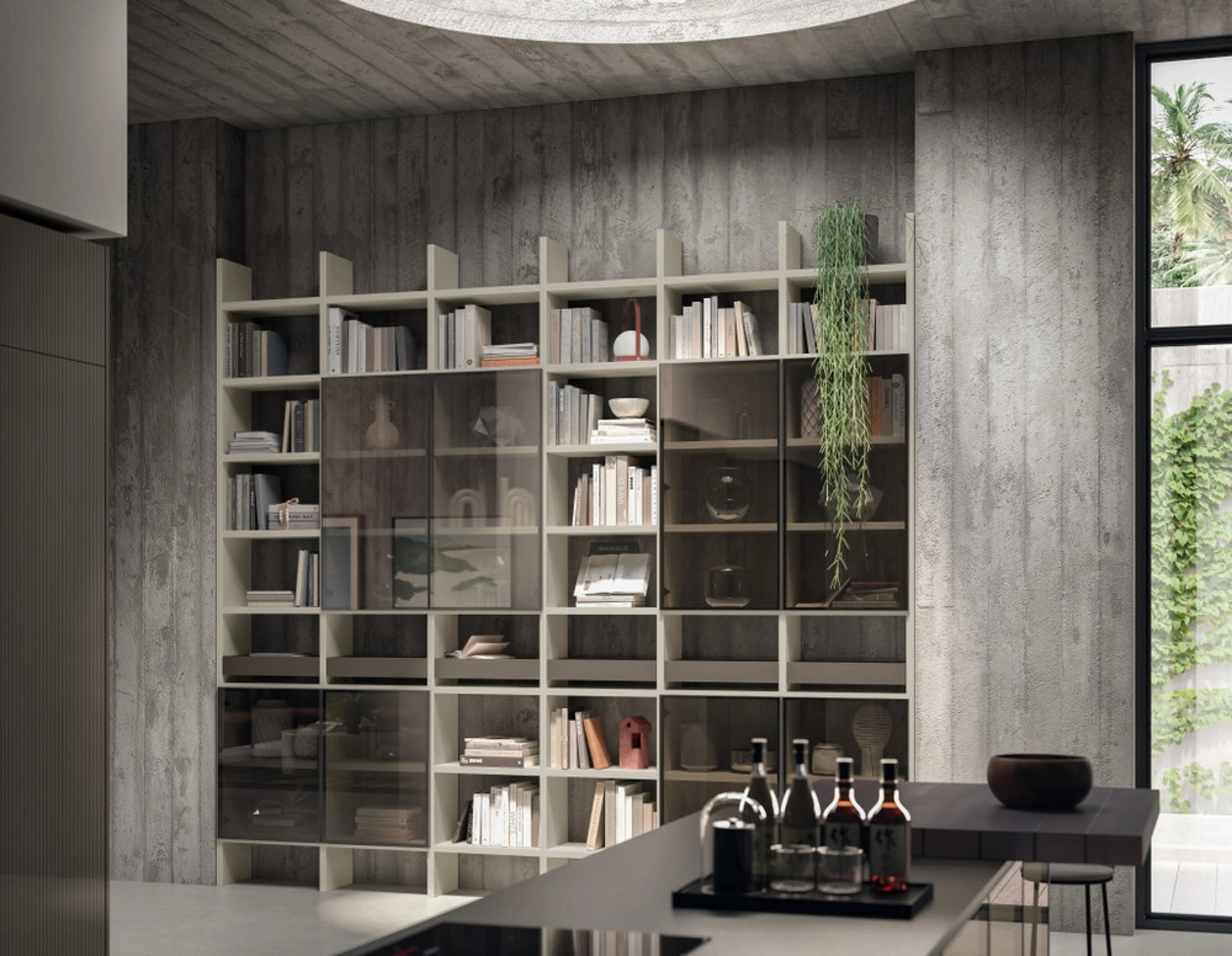 Libreria Living Libra in laccato opaco Grigio Gabbiano e Cuvé di Scavolini