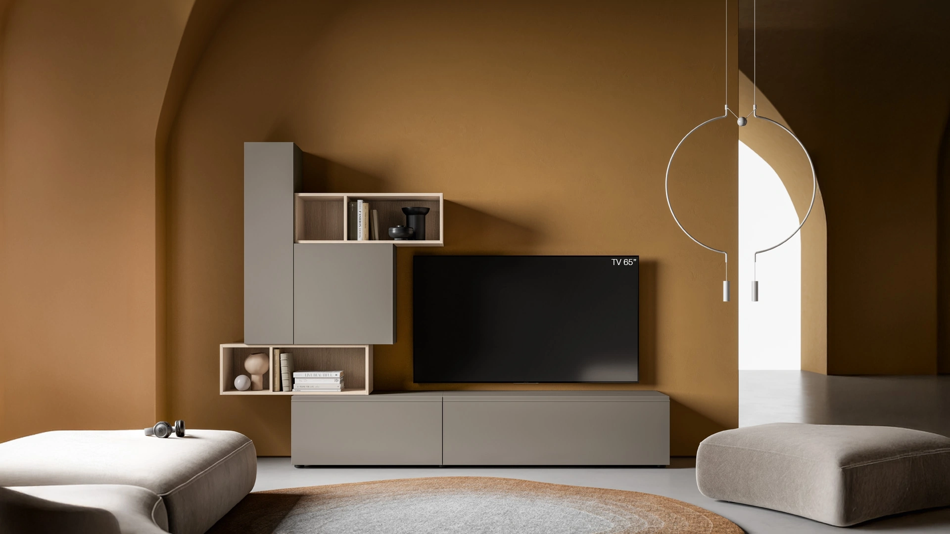 La Parete Attrezzata Pratico PTG452 di SantaLucia nell'immagine è una tra le più esclusive soluzioni d’arredo in commercio: l'alta componibilità e le differenti opportunità di progettazione la rendono pratica e sofisticata. SantaLucia offre a catalogo originali modelli di mobili soggiorno, diversi per stile e forme, texture e componenti: scopri nel nostro showroom l'Arredamento Casa dei migliori produttori. I mobili soggiorno in melaminico dalle linee moderne come il modello nell'immagine sono davvero versatili e capaci di progettare il living usufruendo al meglio di ogni angolo. Lasciati affascinare da un ricco catalogo di mobili per la zona giorno e troverai la parete attrezzata che fa al caso tuo.