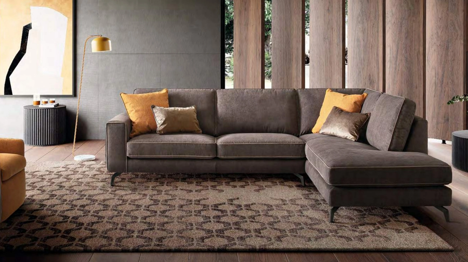 Se desideri imbottiti ad angolo come il modello nella fotografia, caratterizzato dai volumi che invitano a trascorrere i tuoi momenti di riposo. I nostri Salotti sono pensati per essere abbinati a elementi accessori di ogni genere, come tavolini, abat jour e piantane oppure in combinazione con ulteriori divani in tessuto. Il catalogo Le Comfort propone tanti spunti per impreziosire gli interni in nome di funzionalità e design, mettendo al centro il tuo comfort. Divano ad angolo Spencer di Le Comfort: ricrea uno spazio intimo e confortevole in spazi moderni dall'estetica raffinata.