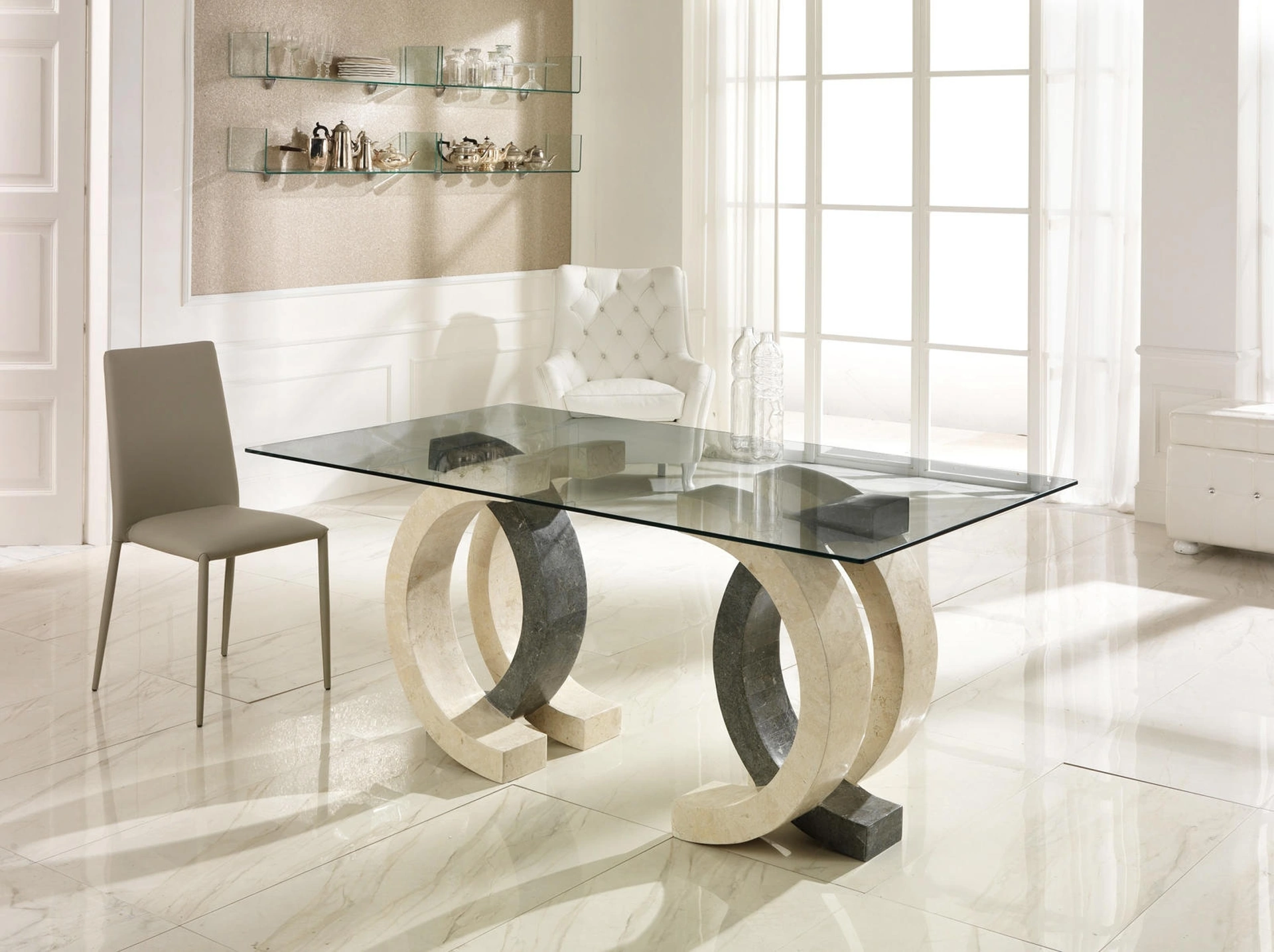 I modelli fissi in vetro come quello mostrato in foto si adattano ai più molteplici spazi e ambienti abitativi, essendo davvero polivalenti e resistenti. Tavolo con base scultorea Olimpia di Stones: scopri una ricca gamma di mobili ed elementi accessori da pranzo per ultimare i tuoi locali contando su diverse possibilità di personalizzazione. I Tavoli sono arredamenti immancabili in ogni abitazione: completa il tuo progetto d'arredo e dai vita alla casa che hai sempre voluto. I Tavoli sono accessori d'arredo grazie ai quali è possibile valorizzare il soggiorno, la zona cucina o anche altri ambienti domestici, grazie a materiali pregiati e fantasiosi accostamenti cromatici.