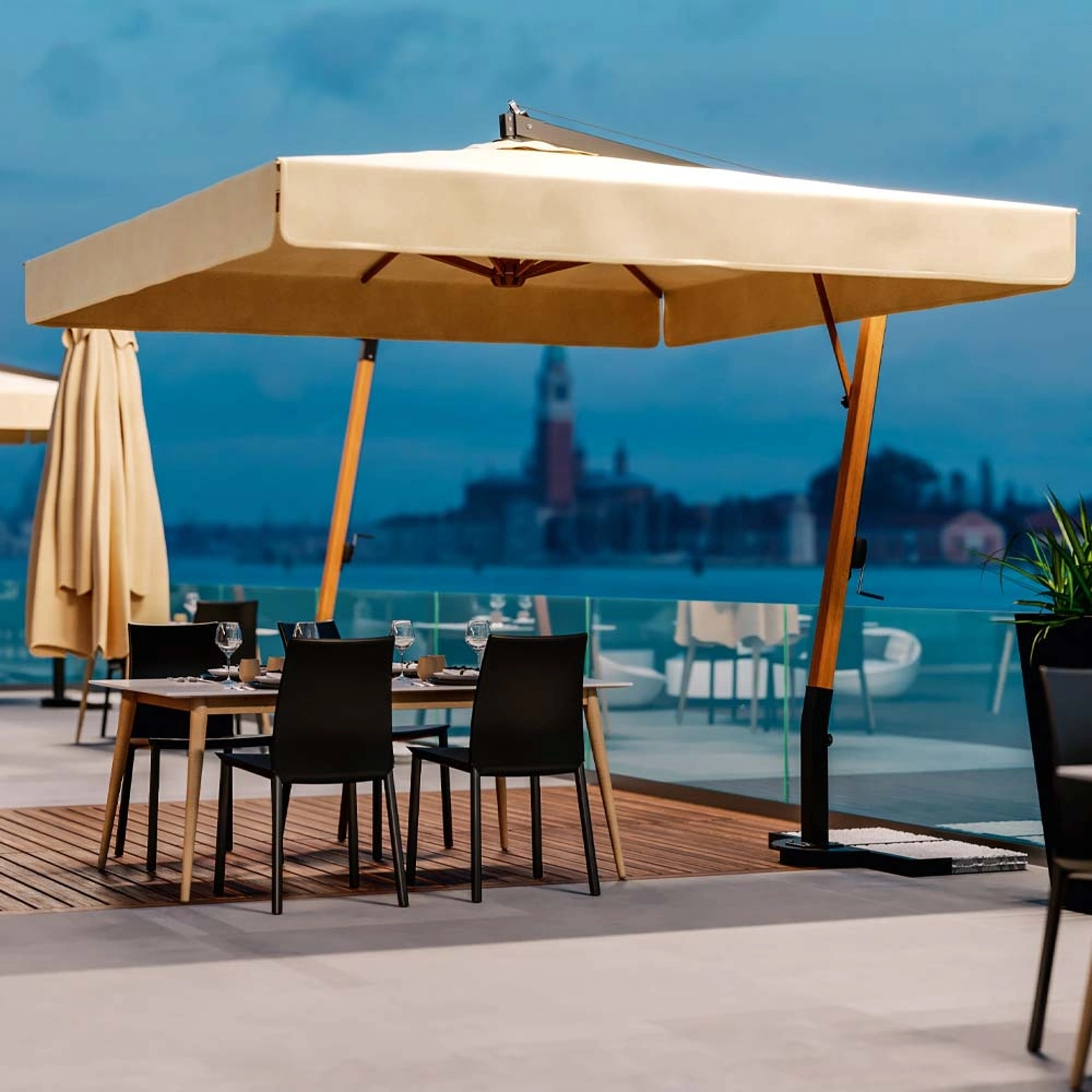 Da noi troverai questa proposta di Ombrellone RVE di La Seggiola e svariate altre soluzioni firmate dal conosciuto marchio per organizzare l’outdoor con praticità e design. Il marchio La Seggiola vanta di una pluriennale professionalità nel settore ed è sempre attenta all’evolversi delle tendenze in termini di arredo per gli spazi outdoor. L’Arredo Giardino va progettato con la stessa attenzione dedicata alla progettazione degli ambienti della nostra casa, cosicché sia un giardino ben progettato. Agli arredi per lo spazio all'aperto che proponiamo in negozio potete chiedere design e funzionalità, come dimostra questa linea di ombrelloni in legno.